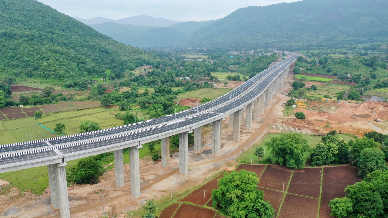 The Project Highway is a new alignment and does not pass through any existing alignment. The proposed Highway is fully Access controlled highway with 6-lane divided carriageway has flexible and Rigid payment with design traffic of 130 MSA. The project consists of 2.85 km Tunnel section and Major Viaducts, Bridges and other cross drainage structures along with all road furniture, drainage and protection works.
